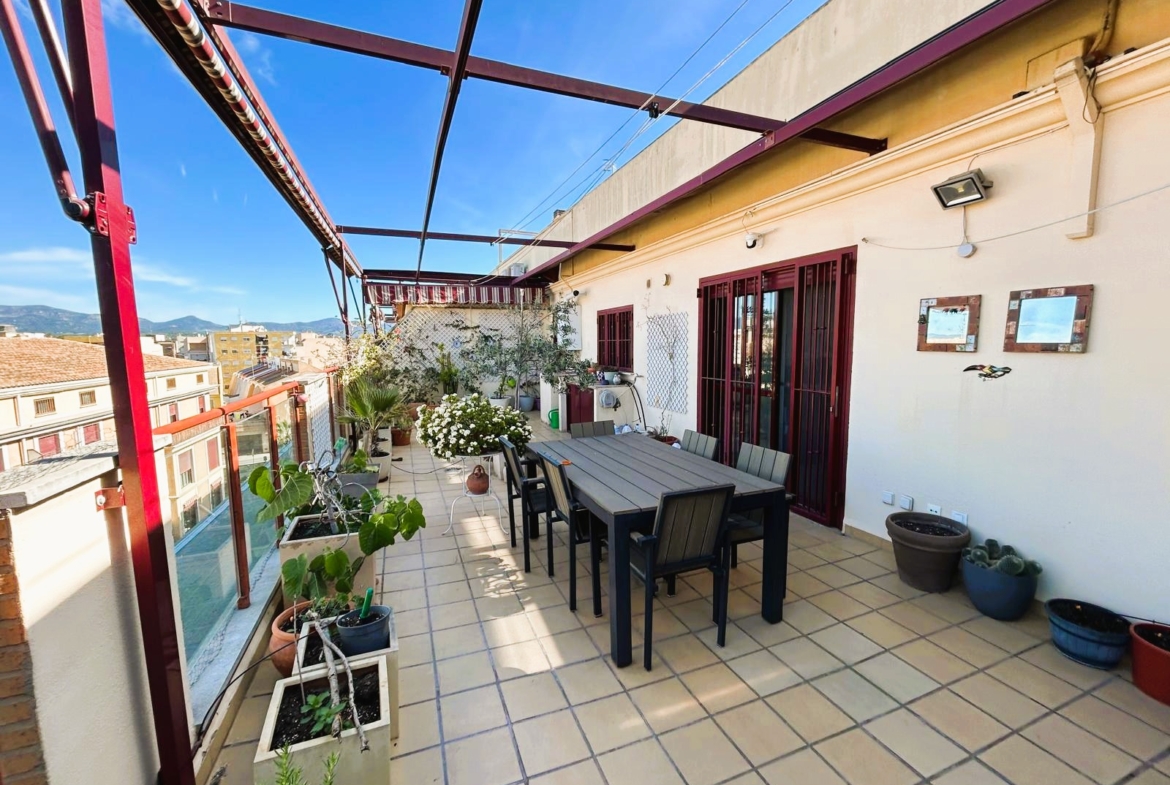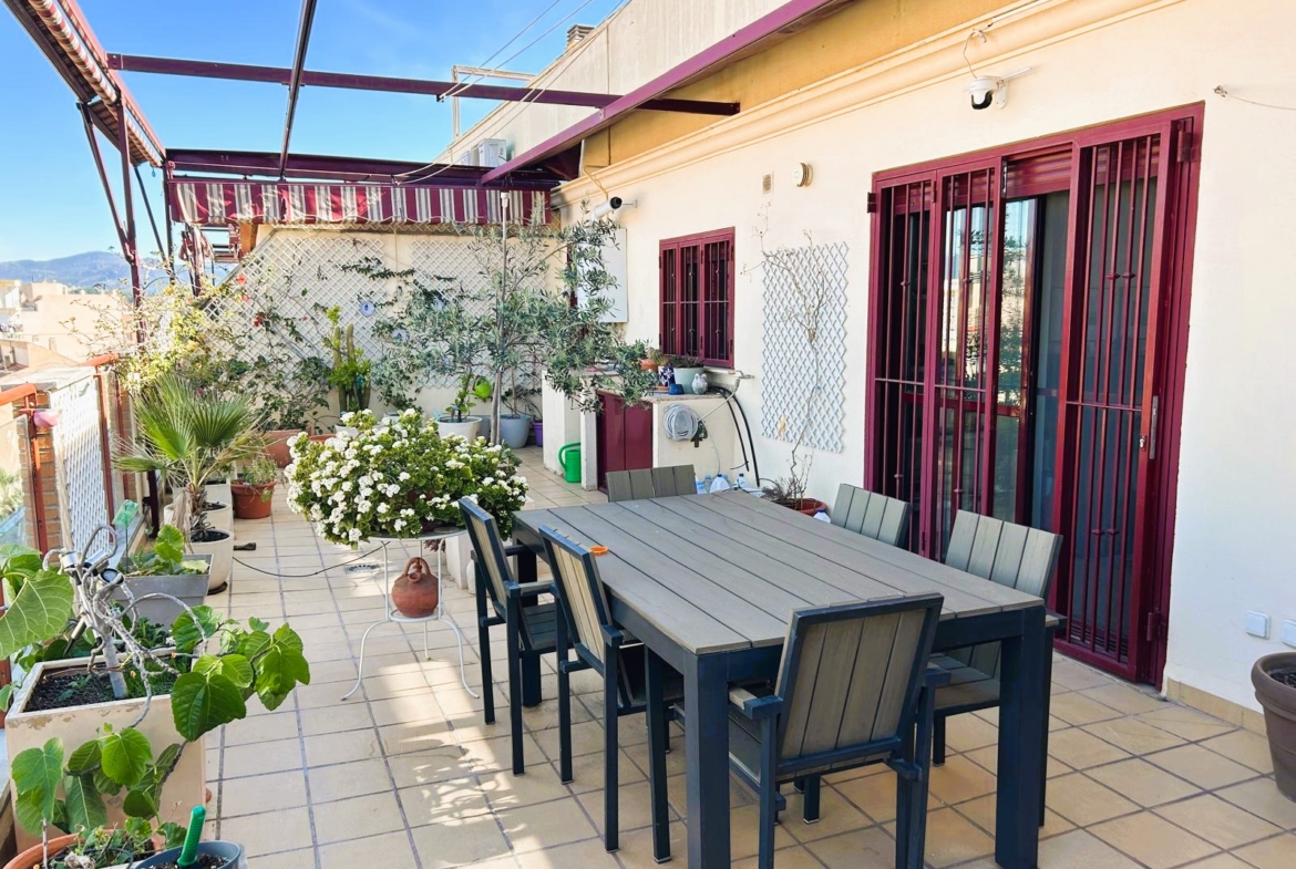Ático en Bétera, con una superficie construida de 115 m2, siendo útiles 102 m2, cuenta con salón-comedor, cocina independiente, tres habitaciones con armarios empotrados, dos baños y una amplia terraza. Dispone de a/a por split, calefacción, y una plaza de garaje. Se encuentra amueblado y con electrodomésticos.