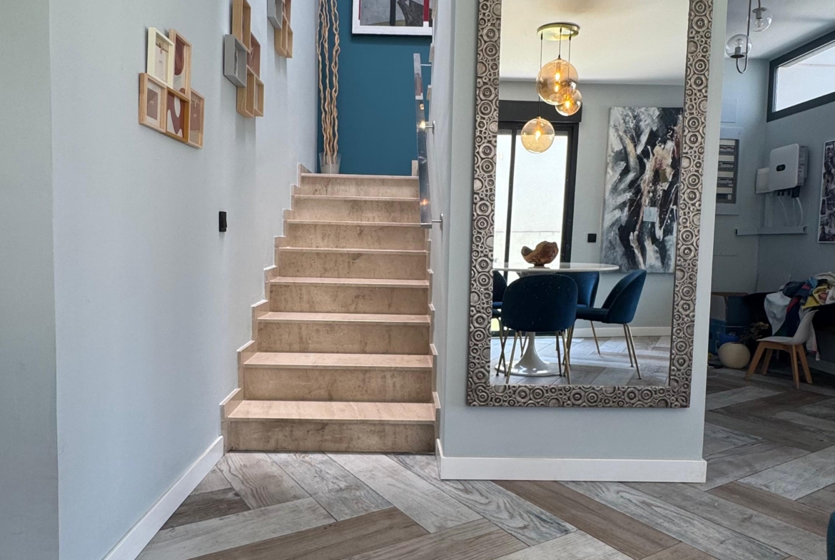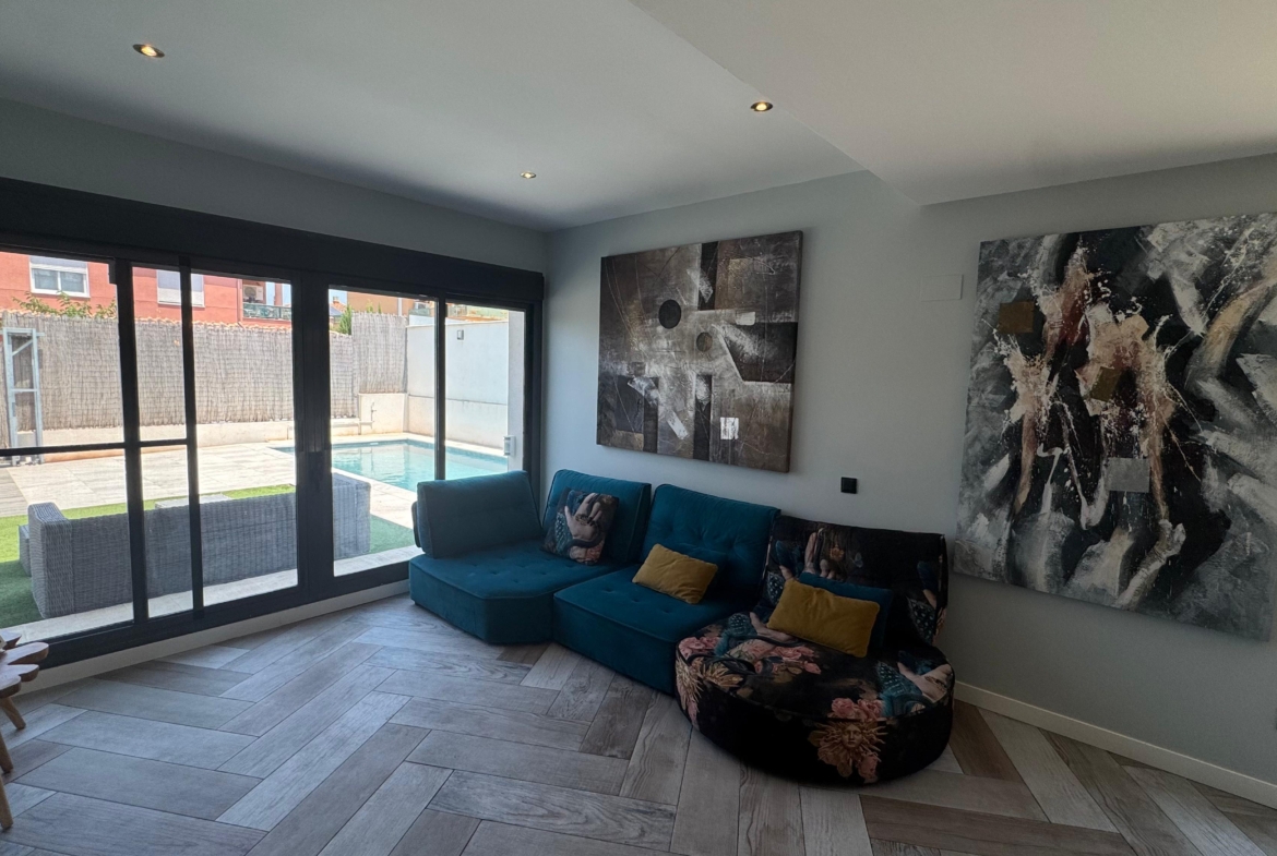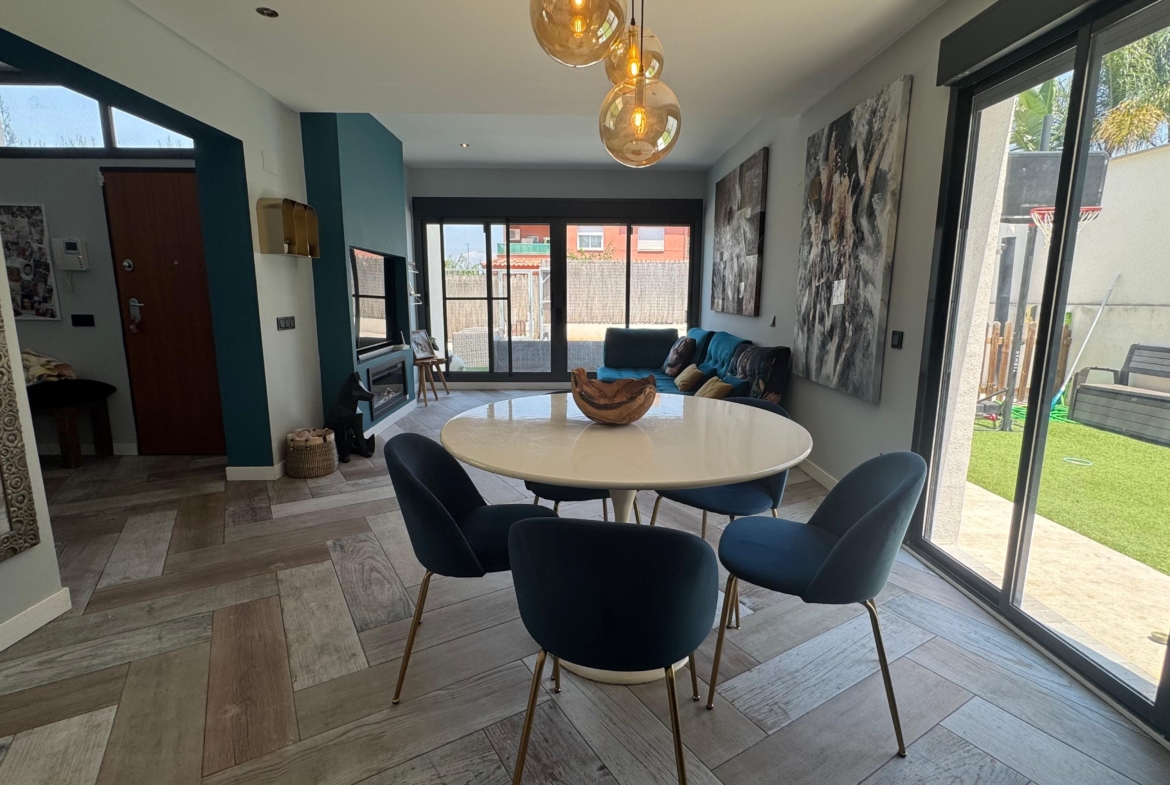 Pareado en San Antonio de Benageber, con una superficie construida de 170 m2, en una parcela de 324 m2 que cuenta con piscina privada y jardín. La vivienda consta de dos plantas, en la planta baja cuenta con salón-comedor, cocina abierta con lavadero con acceso a la terraza trasera, con una cenador, una baño completo y un estudio. En la primera planta cuenta con cuatro habitaciones con armarios empotrados, y en la principal con vestidor, dos baños(uno de ellos en suite). Estilo moderno, buena ubicación.